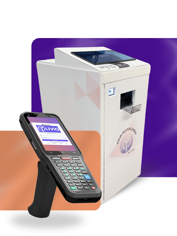 Livio propose des bornes d’accueil connectées qui scannent les QR codes des participants et impriment automatiquement leurs badges. Chaque badge contient un identifiant unique permettant de suivre les entrées et la présence en temps réel, que ce soit à l’accueil général ou à l’entrée de conférences et ateliers. Le scan peut être effectué via les douchettes Livio.